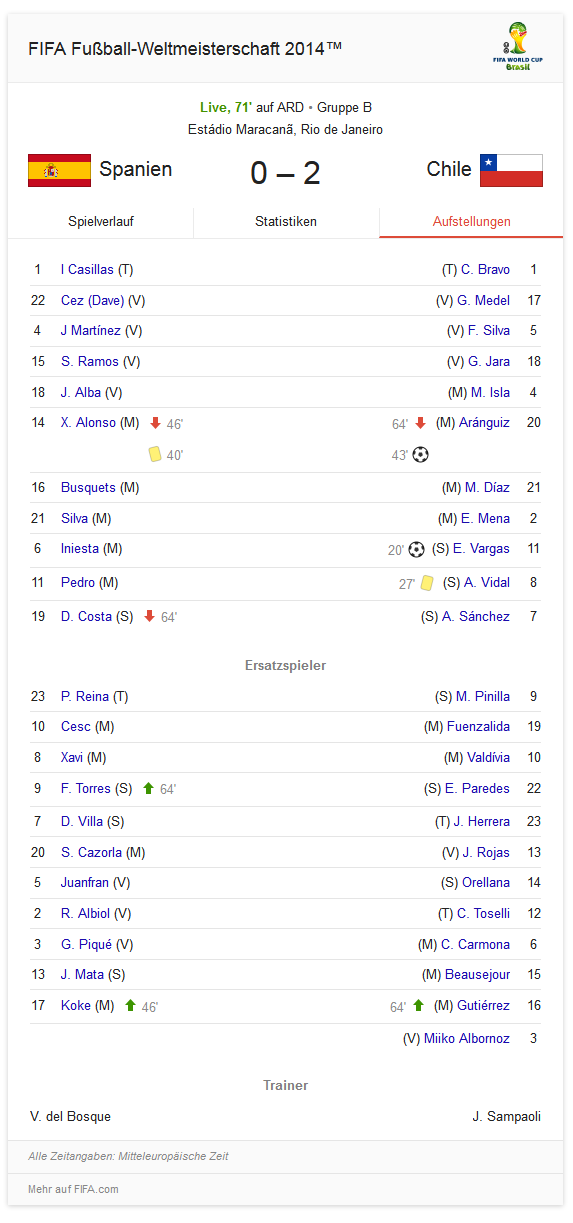 Google Suche zum WM-Doodle Spanien gegen Chile Aufstellungen Veröffentlicht 18. Juni 2014 mit 573 × 1223 in Google-Doodles zur Fußball-WM 2014 geben Fragen + Antworten Google Suche zum WM-Doodle Spanien gegen Chile mit der Aufstellung Google Suche zum WM-Doodle Spanien gegen Chile mit der Aufstellung beider Teams